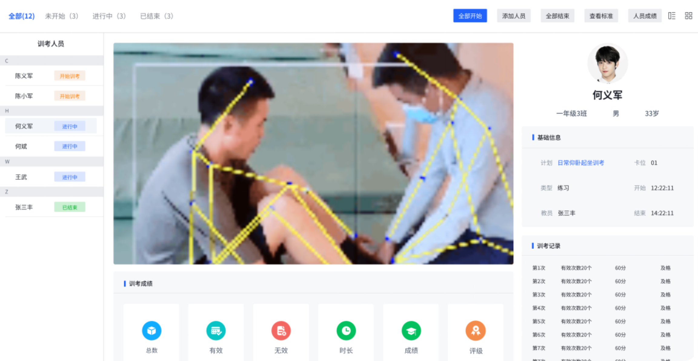实时掌握训练人员状态及训练总体态势,及时调整计划应对突发情况